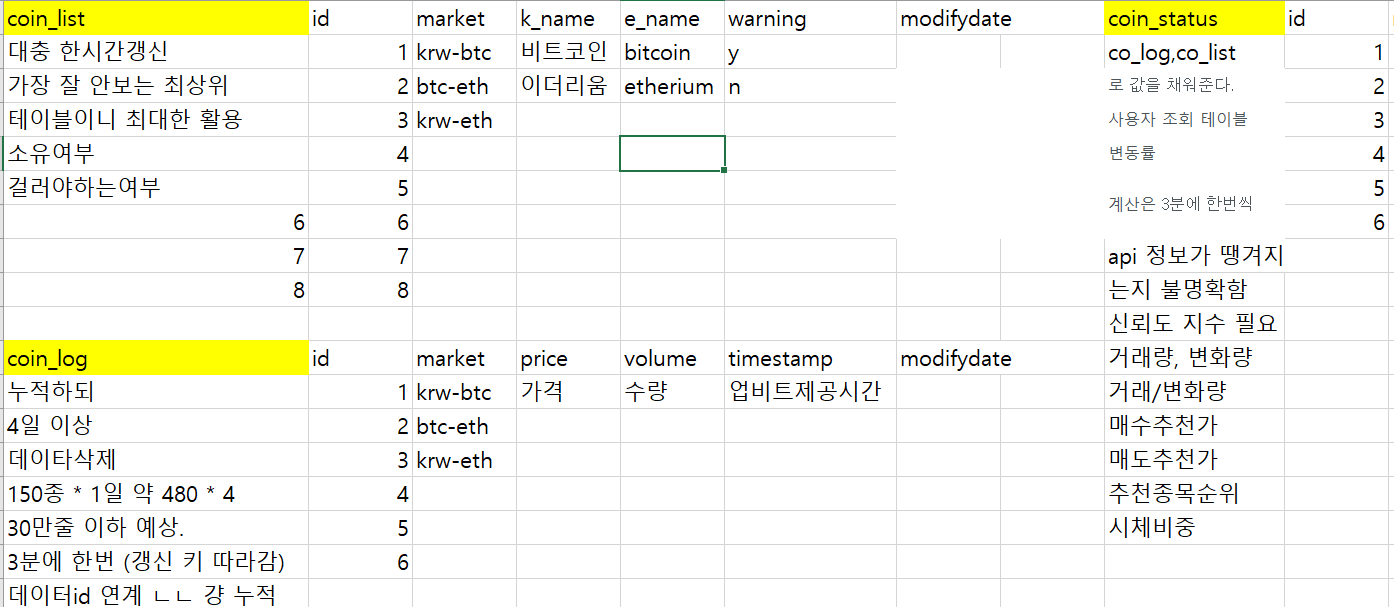 coin_list - > key table 이다. 백엔드 api에서 가장 낮은 주기로 갱신예정, 여기다가 웹사용자 보여주는 지표 넣을생각이다.