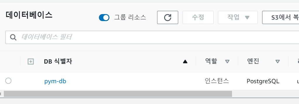 aws 로그인 이후, RDS 서비스 -> 데이타베이스 생성 -> PGSQL 선택 후