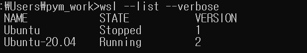 7. wsl --set-default-version 2-> 버전 2를 기본 사용하도록 세팅