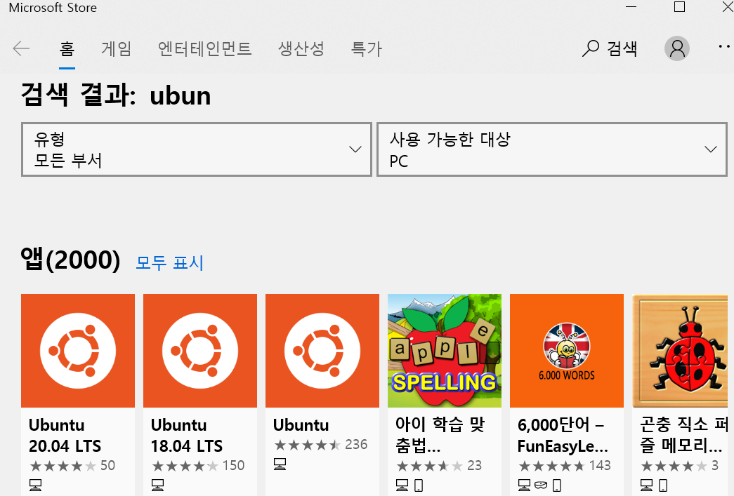 4-1. 윈도우용 우분투를 설치하여 터미널로 접속할 계획이다. lts를 설치하자. 마이크로소프트 스토어에서 설치 가능.